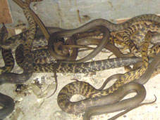 无冬眠养殖:人工养蛇必须实行无冬眠养殖才能加快幼蛇的生长速度,提高成活率,同时也就提高了经济效益 |